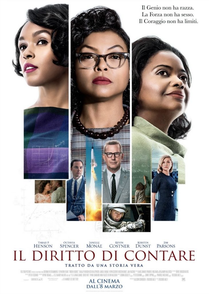 Il 6 gennaio 2017 (dopo l’anteprima dell’1 dicembre 2016 ad Hampton, in Virginia, dove si svolge la trama ispirata a fatti storici, e un’uscita limitata a partire dal giorno di Natale) giunge ufficialmente nei cinema degli Stati Uniti Il diritto di contare di Theodore Melfi, su tre scienziate afroamericane (interpretate da Taraji P. Henson, Octavia Specer e Janelle Monáe) che nel 1961 furono determinanti nello sviluppo del programma spaziale della NASA, osteggiate però dalla persistente segregazione razziale dell’epoca. Nel mondo il film ha raggranellato quasi 236 milioni di dollari.